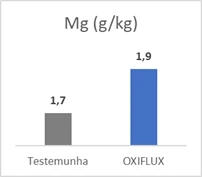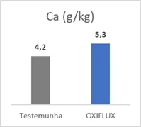 As análises foliares também mostraram aumento, sendo 14% nos teores de magnésio e 26% nos de cálcio, confirmando o melhor estado nutricional das plantas tratadas.