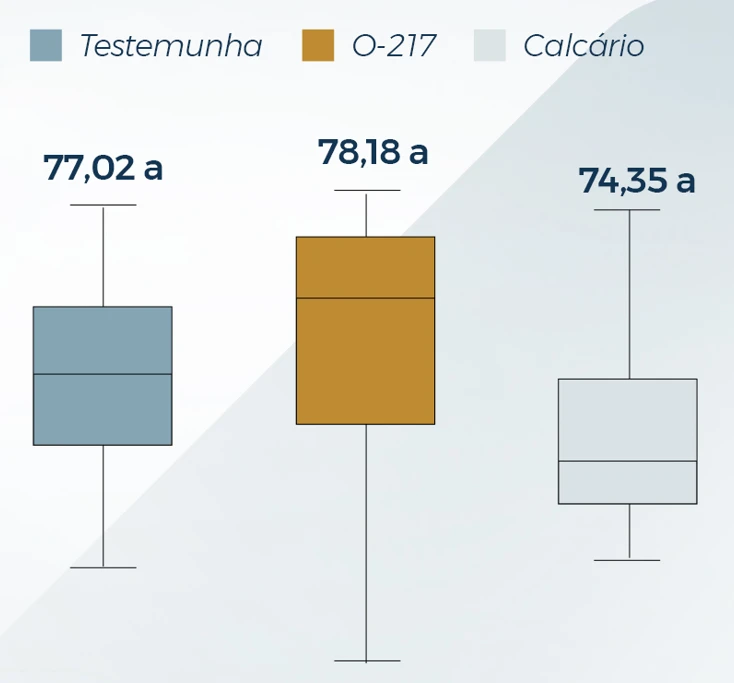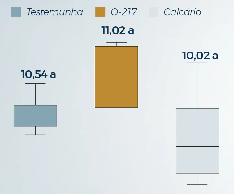 No estudo, o produto O-217, que tem como característica granulometria refinada, foi comparado com a testemunha (sem correção) e com o tratamento padrão com calcário.