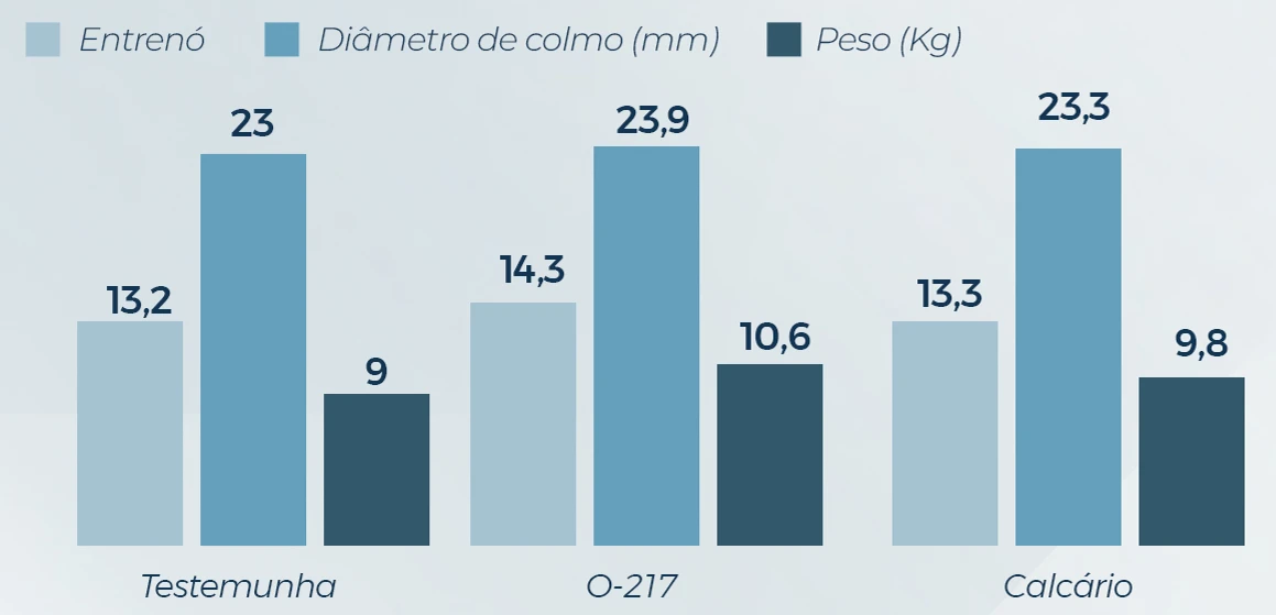 O tratamento com O-217 entregou um maior diâmetro de colmo, número de entrenós e peso por planta, resultando em TCH e TAH maiores e, também, indicando maior qualidade no produto final.