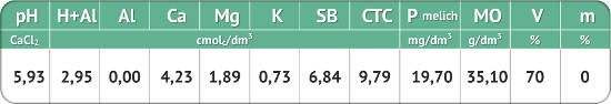 A análise do solo anterior ao uso do Fertimacro está na tabela abaixo.