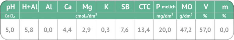 Observa-se uma grande melhoria na fertilidade do solo, que após o uso do Fertimacro aumenta pH, V%, a toxidez de alumínio é zerada. Também percebe-se um aumento significativo na disponibilidade do fósforo.
